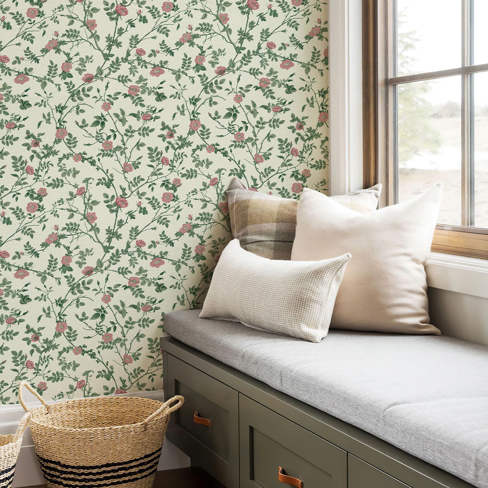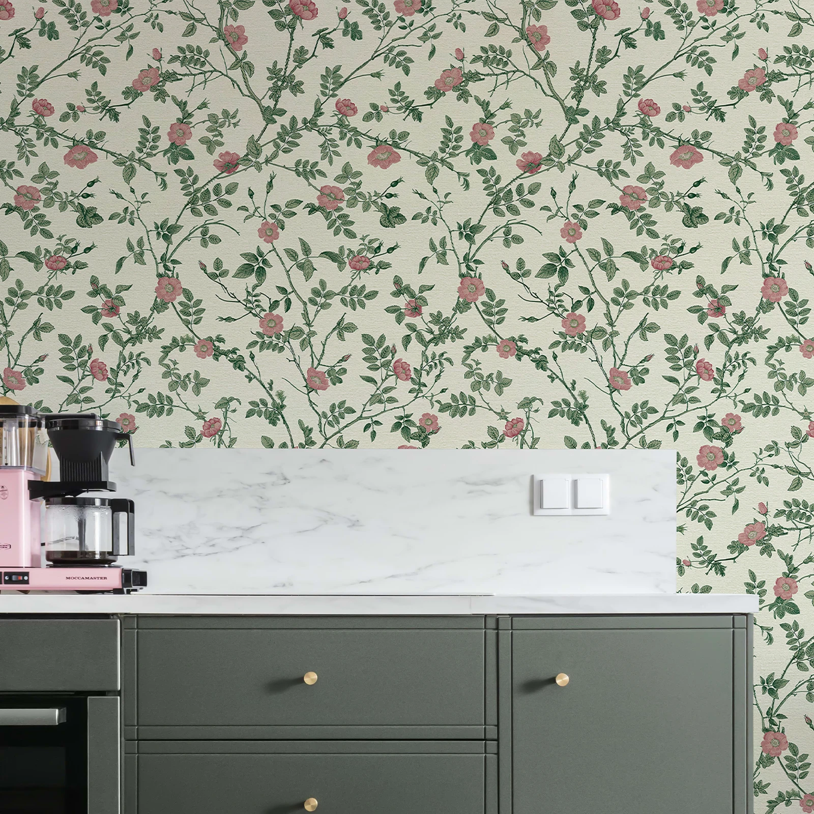 วอลเปเปอร์ลายดอกไม้สีเขียวกันน้ำกาวในตัวสติ๊กเกอร์แปะผนังกำแพงดอกไม้ย้อนยุคสติกเกอร์ติดตู้เฟอร์นิเจอร์หรูหรา จาก 1 รีวิว
