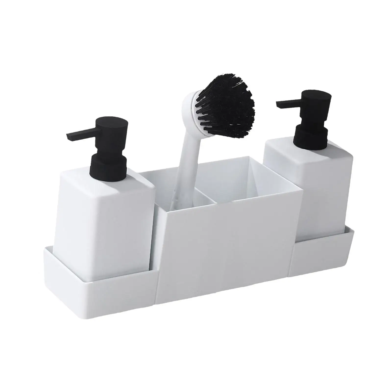 แพ็กเกจ: ชุดนี้ประกอบด้วยเครื่องจ่ายสบู่สำหรับห้องครัว 2 ชิ้น, แปรง 1 ชิ้น, ปั๊มสำรอง 1 ชิ้น และถาดเก็บของ 1 ชิ้น ช่วยให้ของใช้จำเป็นในครัวและห้องน้ำอยู่ใกล้มือ