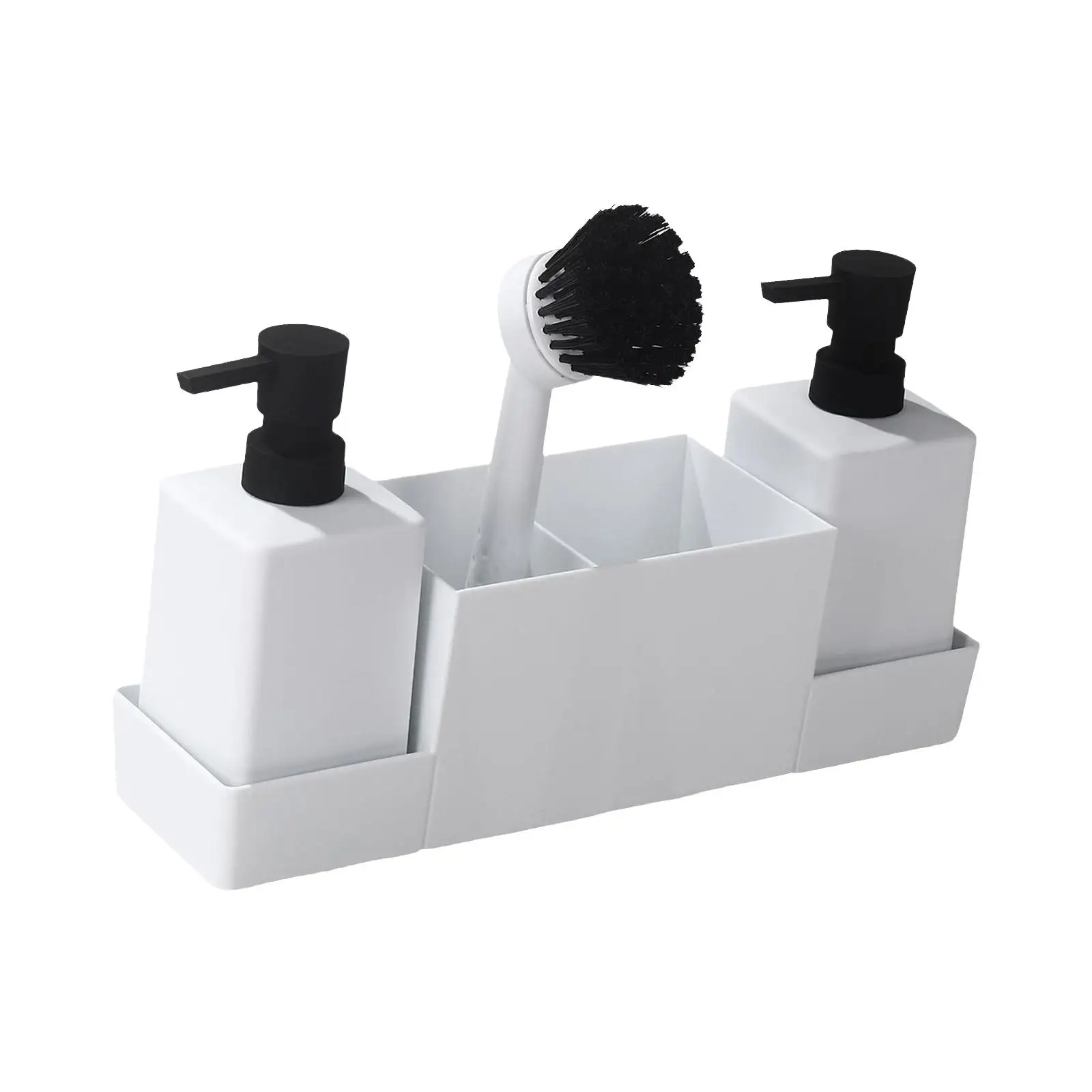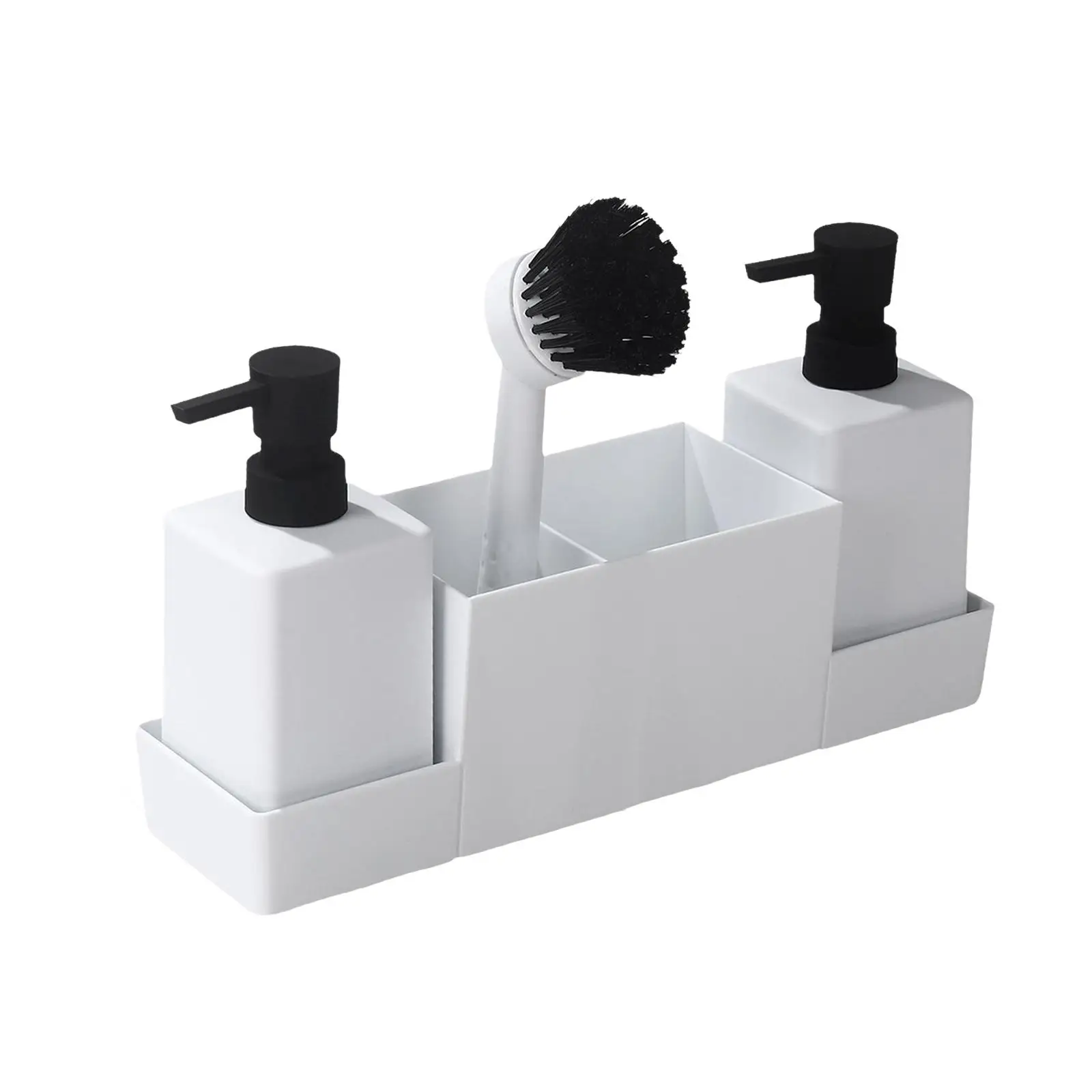 ที่วางขวดสบู่เหลวแบบติดตั้งบนเคาน์เตอร์อ่างล้างจาน พร้อมถาดเก็บฟองน้ำและแปรงขัด ฐานกันลื่น พร้อมที่จัดระเบียบ