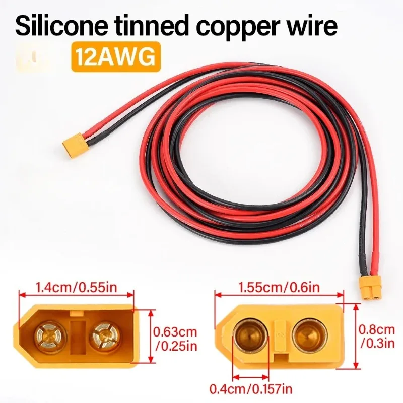 สายเชื่อมต่อแบบแปลงหัว XT60 ตัวผู้-ตัวเมีย ขนาด 12AWG ความยาว 300 ซม. สายซิลิโคน สำหรับเชื่อมต่อแบตเตอรี่ลิโพ ใช้กับโดรน รถบังคับ เรือบังคับ จาก 1 รีวิว