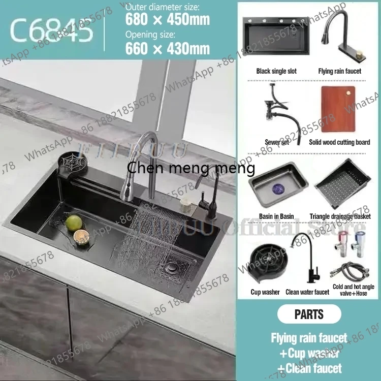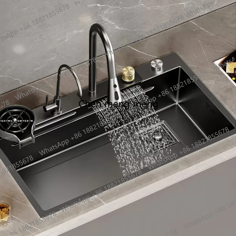 สแตนเลสสีดำ Raindance น้ำตกอ่างล้างจานขนาดใหญ่ชามเดี่ยวอ่างล้างหน้าอ่างล้างจาน Undercounter Topmount ก๊อกน้ำท่อระบายน้ำพารามิเตอร์ผลิตภัณฑ์