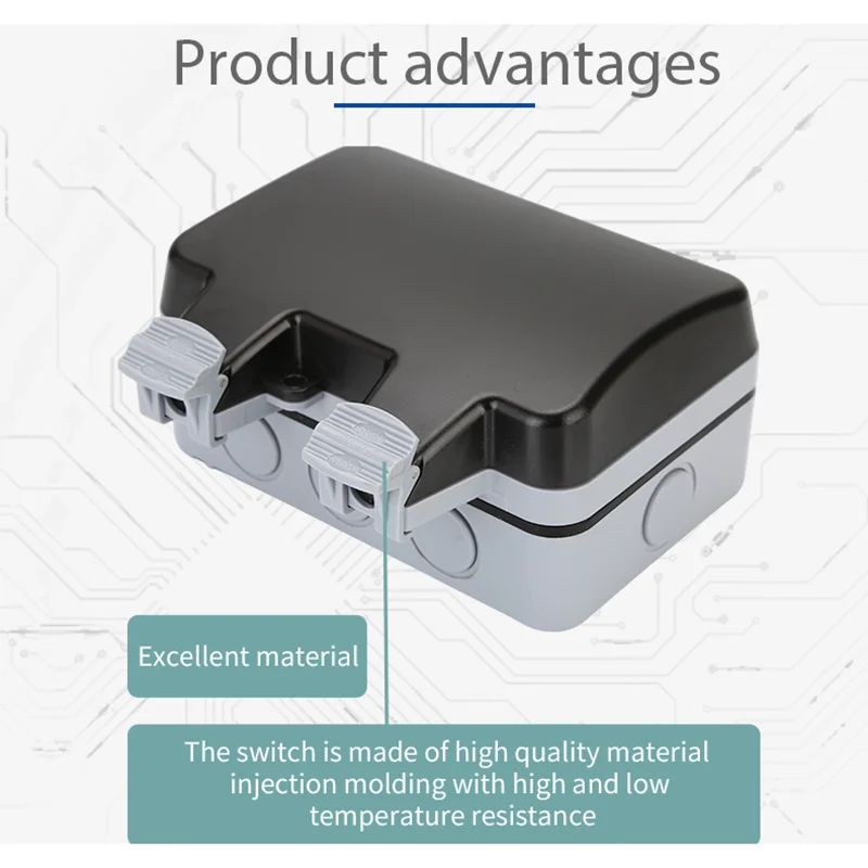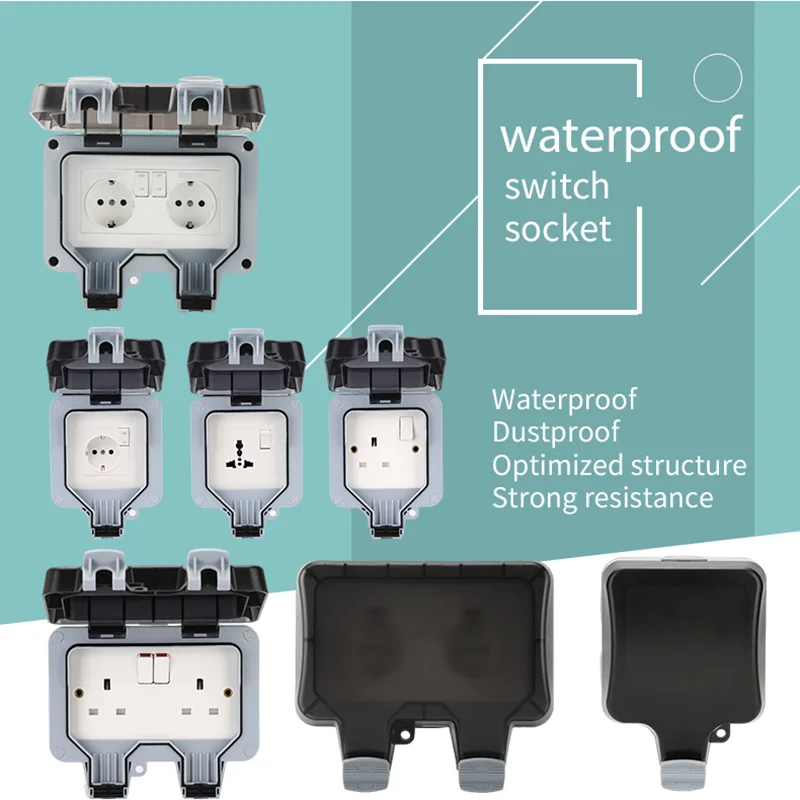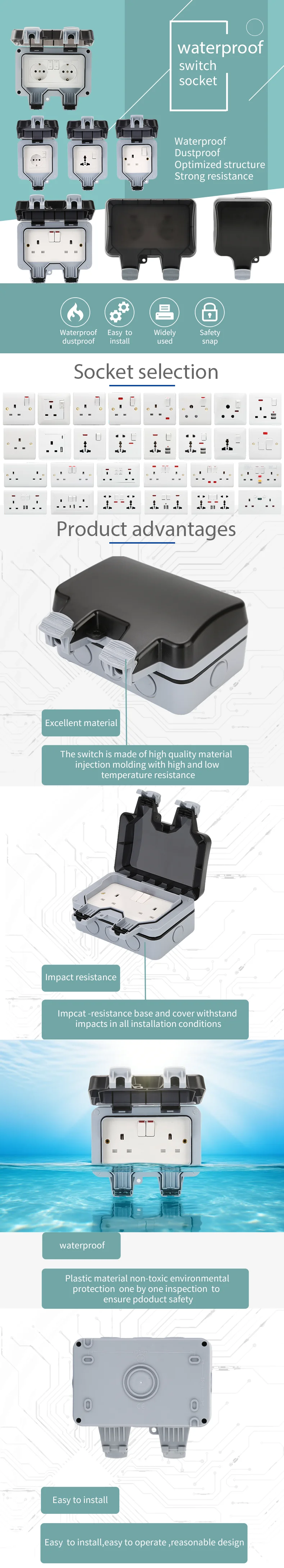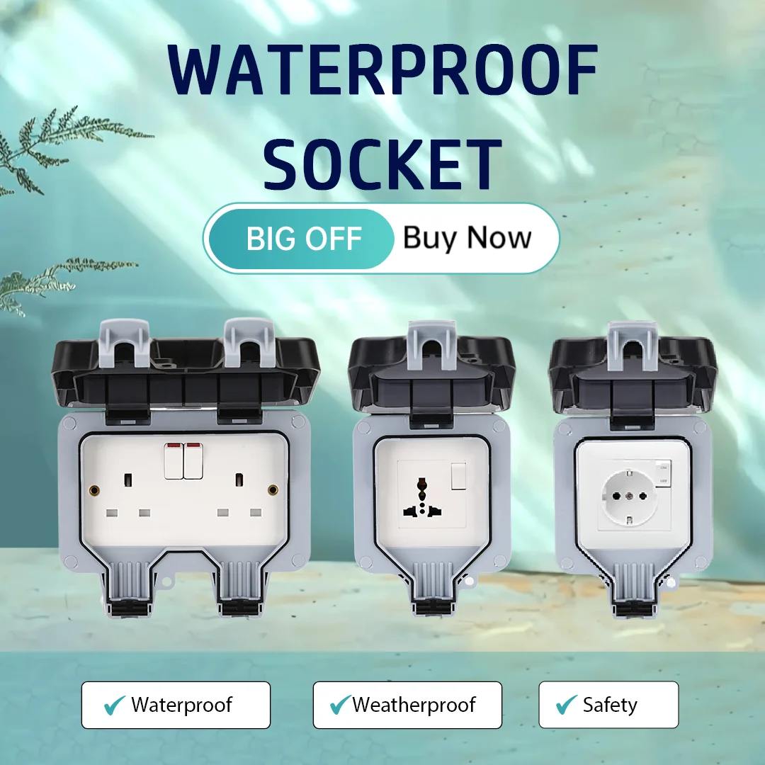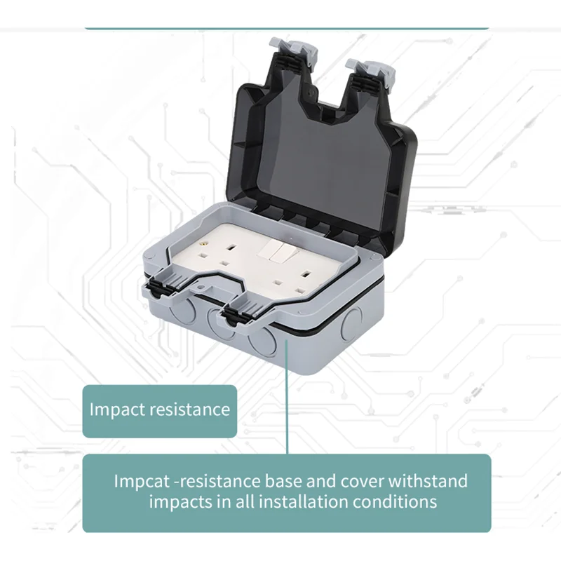 เต้ารับติดผนังกลางแจ้งกันน้ำมาตรฐาน IP66 ของสหราชอาณาจักร พร้อมสวิตช์ สำหรับบ้านและสวน รองรับปลั๊กขนาดใหญ่ แบบสองช่อง