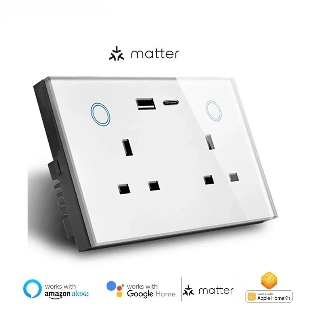 - 1 × เมลери 147 มม. แผงกระจกขนาดใหญ่ Matter Over WiFi สมาร์ทซ็อกเก็ต (ปลั๊ก BS)