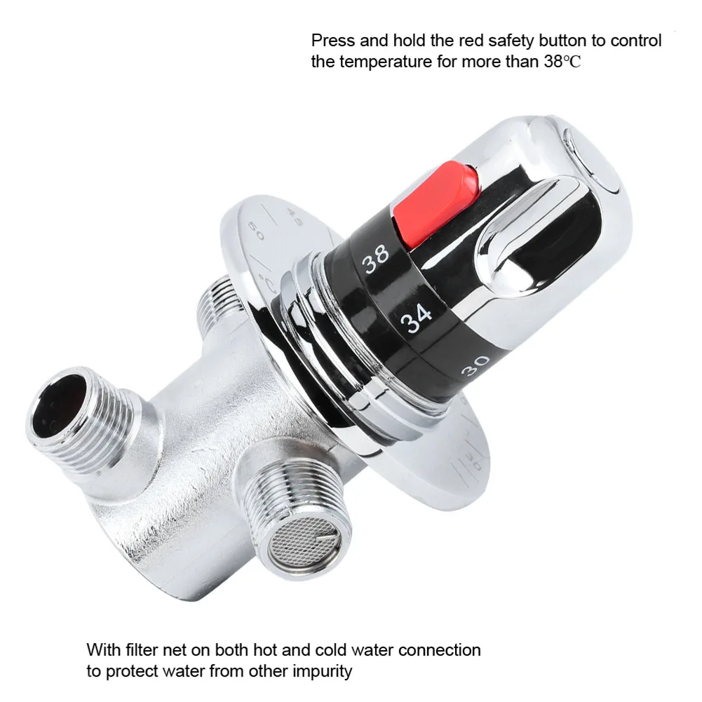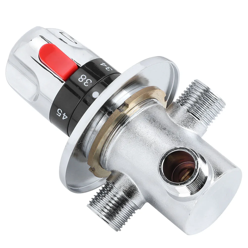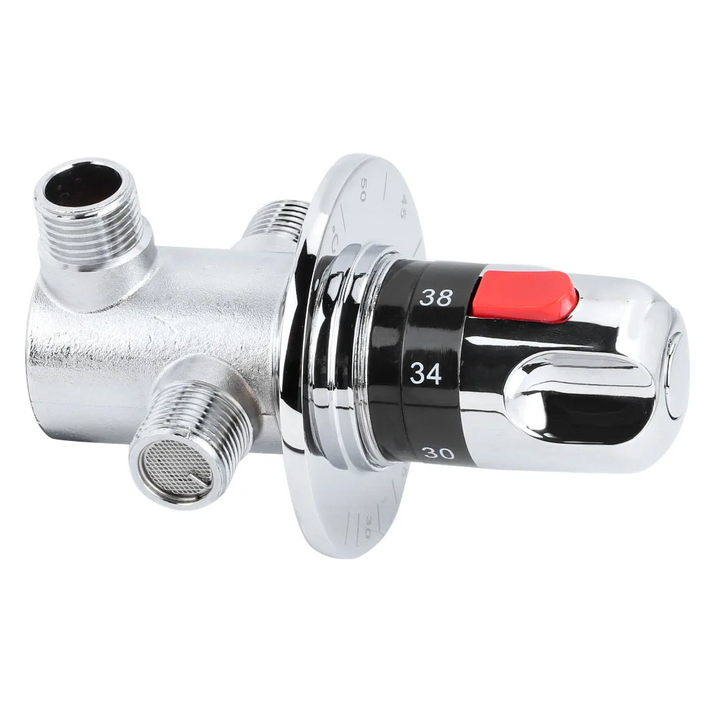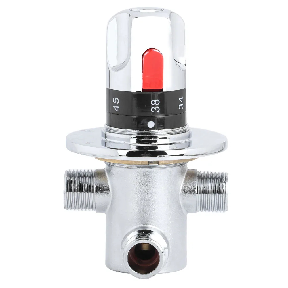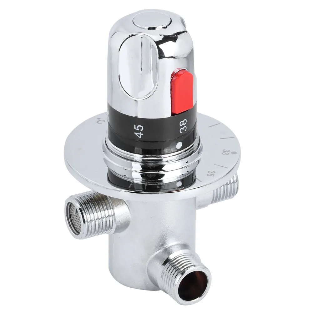 วาล์วควบคุมอุณหภูมิฝักบัว วาล์วควบคุมอุณหภูมิแบบเทอร์โมสแตติกทองเหลือง สำหรับผสมน้ำร้อน/น้ำเย็น ใช้กับเครื่องทำน้ำอุ่นในบ้าน