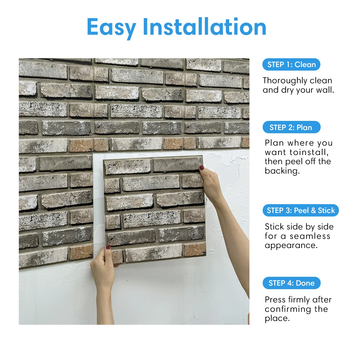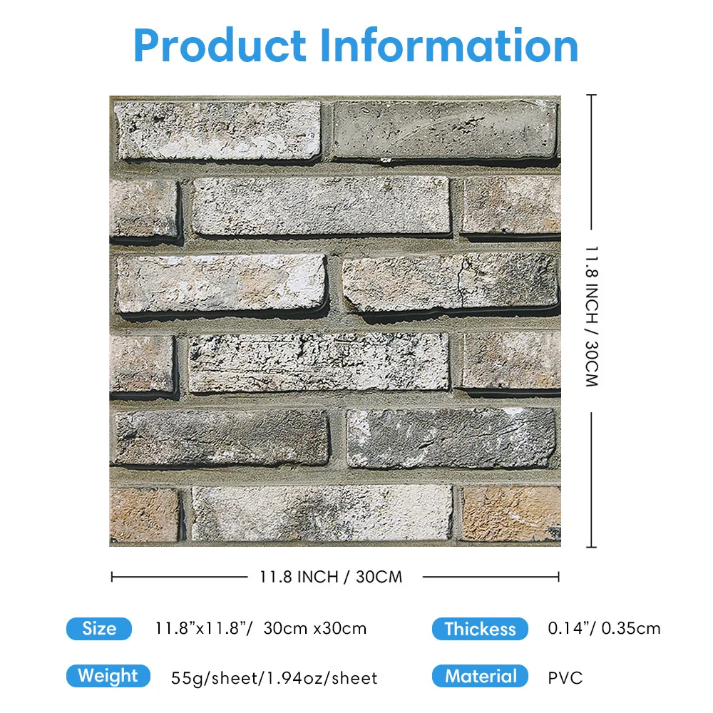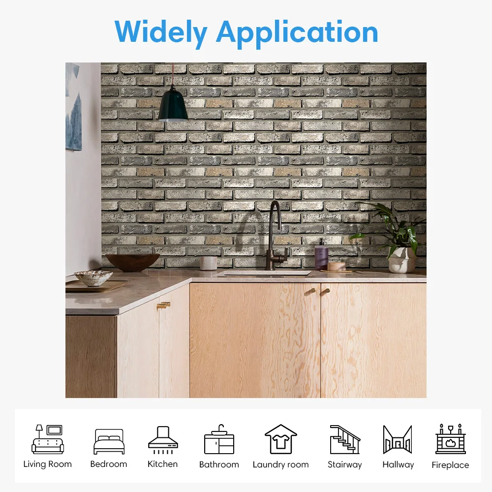 10 ชิ้น/20 ชิ้น 3D Faux Brick Peel และ Stick ผนังแผงกันน้ํา PVC ผนังแผงสําหรับห้องครัว, ห้องนั่งเล่น, ผนังตกแต่ง จาก 1 รีวิว