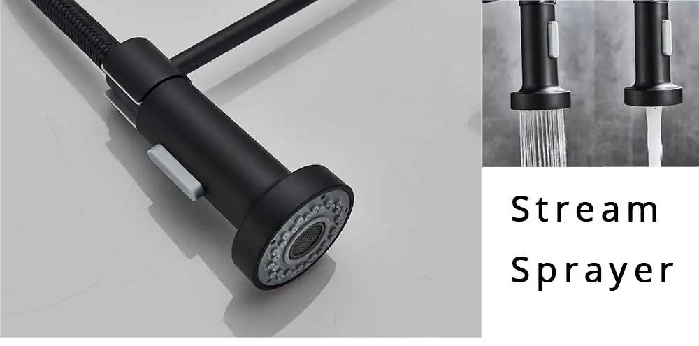 Matte Black Kitchen Faucet Mixer Tap 360 Degree Rotation Stream Sprayer Nozzle Hot Cold Faucet