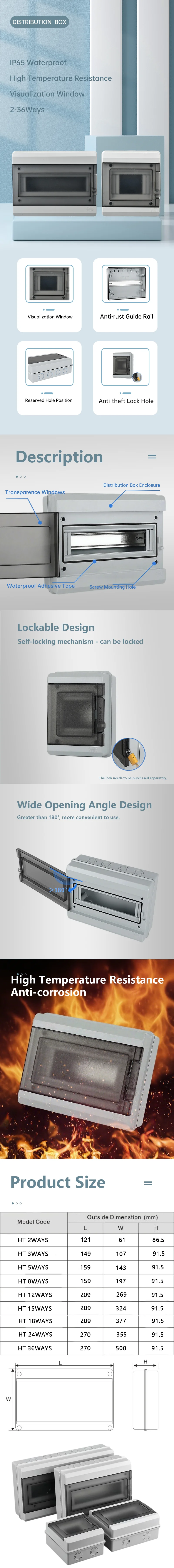 กล่องรวมสายไฟฟ้ารุ่น HT ซีรีส์ใหม่ แบบ 2/3/5/8/12/15/18/24 ทาง ผลิตจากพลาสติก PC สำหรับใช้งานภายนอกอาคาร ป้องกันน้ำระดับ IP65 กล่องสวิตช์
