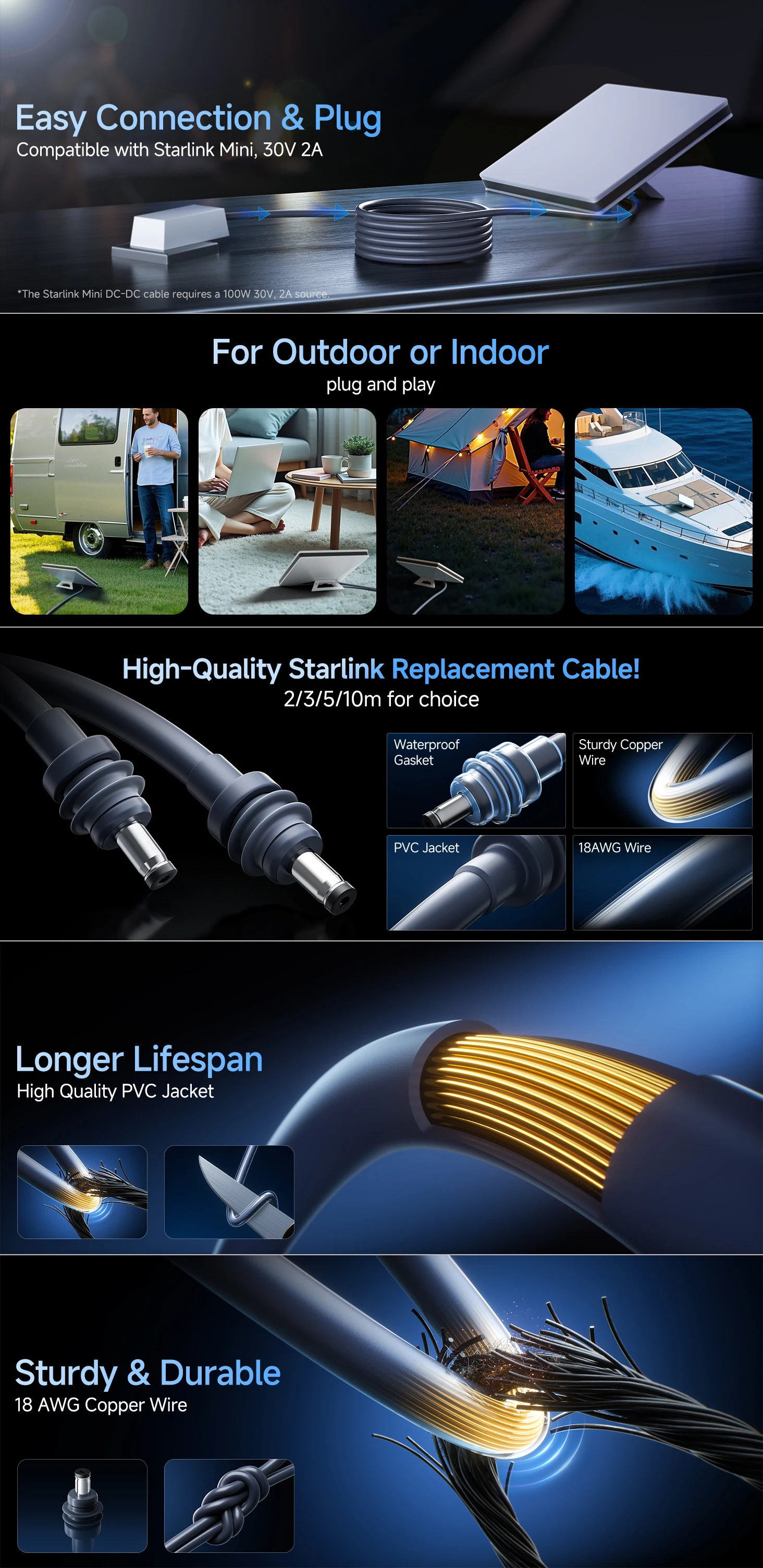 【การเชื่อมต่อสายไฟขนาดเล็ก Starlink ที่ทนต่อสภาพอากาศ】สายไฟขนาดเล็ก Starlink "llano" ติดตั้งขั้วต่อกระแสสูง 5.5 x 2.1 มม. และซีลกันน้ำ ทำให้มั่นใจได้ถึงการเชื่อมต่อที่เสถียรและความปลอดภัยในสภาพอากาศที่ไม่เอื้ออำนวยมันยืนหยัดเป็นสายไฟ Starlink ที่เชื่อถือได้สำหรับการใช้งานกลางแจ้ง