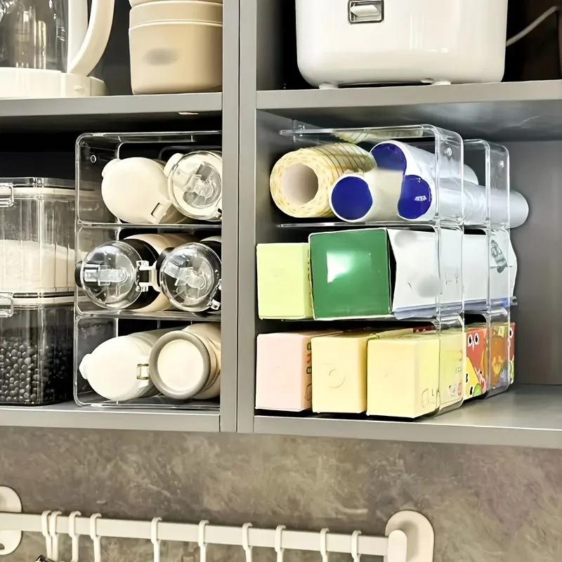 ชั้นวางพลาสติกห่ออาหาร 2/4 ชั้น, ที่จัดระเบียบลิ้นชักตู้ครัวสำหรับถุงและเครื่องเทศ ดีไซน์หลายชั้น, ชั้นวางอเนกประสงค์