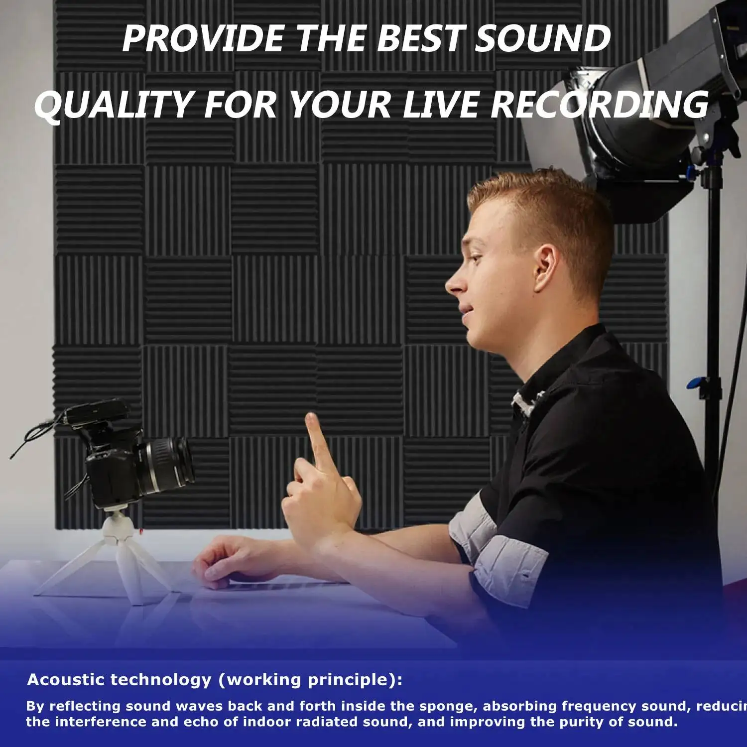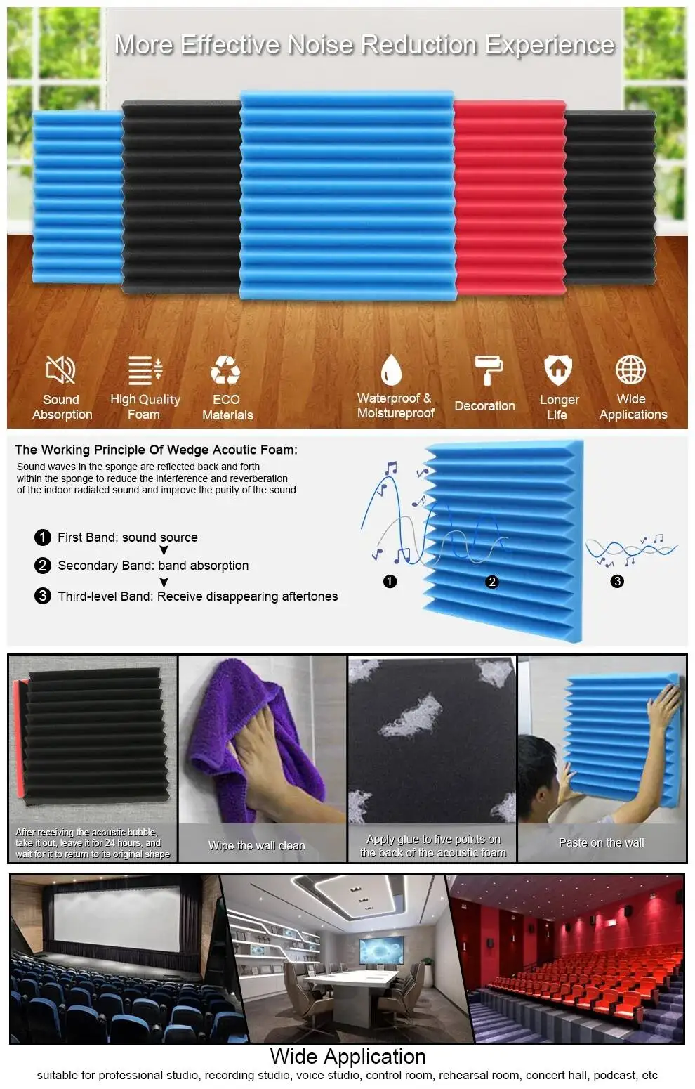 แผ่นซับเสียงอะคูสติกแบบลิ่ม ขนาด 1 นิ้ว x 12 นิ้ว จำนวน 48 ชิ้น สำหรับติดผนัง ป้องกันเสียงรบกวน ฉนวนกันเสียง