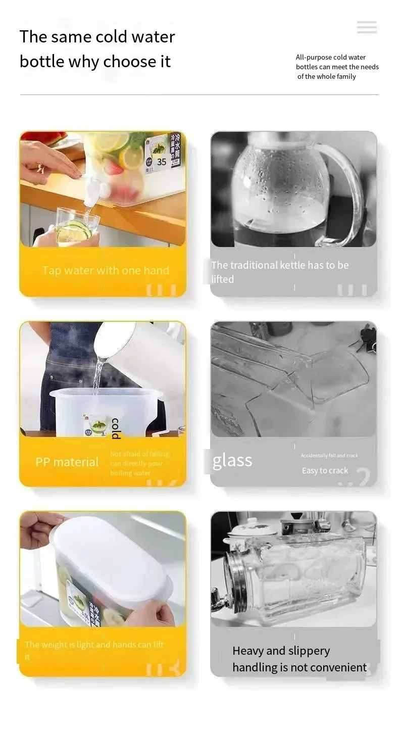 3.5ลิตรเหยือกน้ำเก็บความเย็นขนาดใหญ่กาต้มน้ำเย็นพร้อมก๊อกน้ำในตู้เย็นเครื่องทำเครื่องดื่มเย็นตู้เย็นและหัวจุก