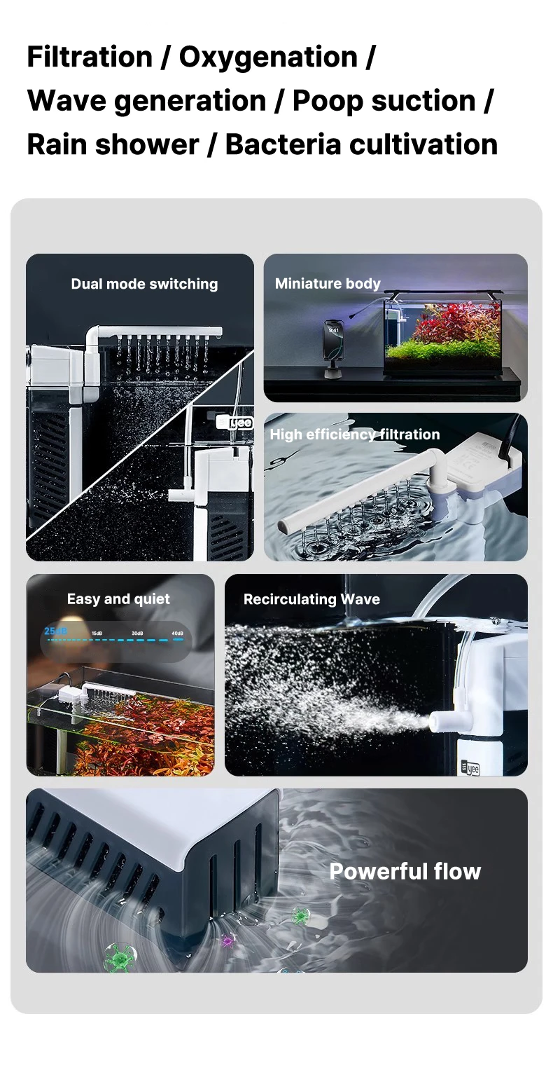 เงียบ 5 W Aquarium Fish TANK ตัวกรอง 6 In 1 Water Purification ปั๊มหมุนเวียน Aeration ถังขนาดเล็กกรองน้ําปั๊ม 2W