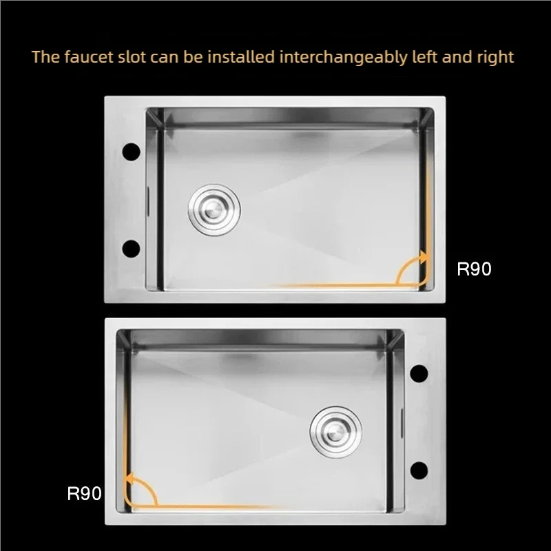 อ่างล้างจานสแตนเลส Transversal ด้านข้างหลุมขนาดใหญ่ Single Slot ในครัวเรือนโรงอาหารจานและล้างผักอ่างล้างหน้า