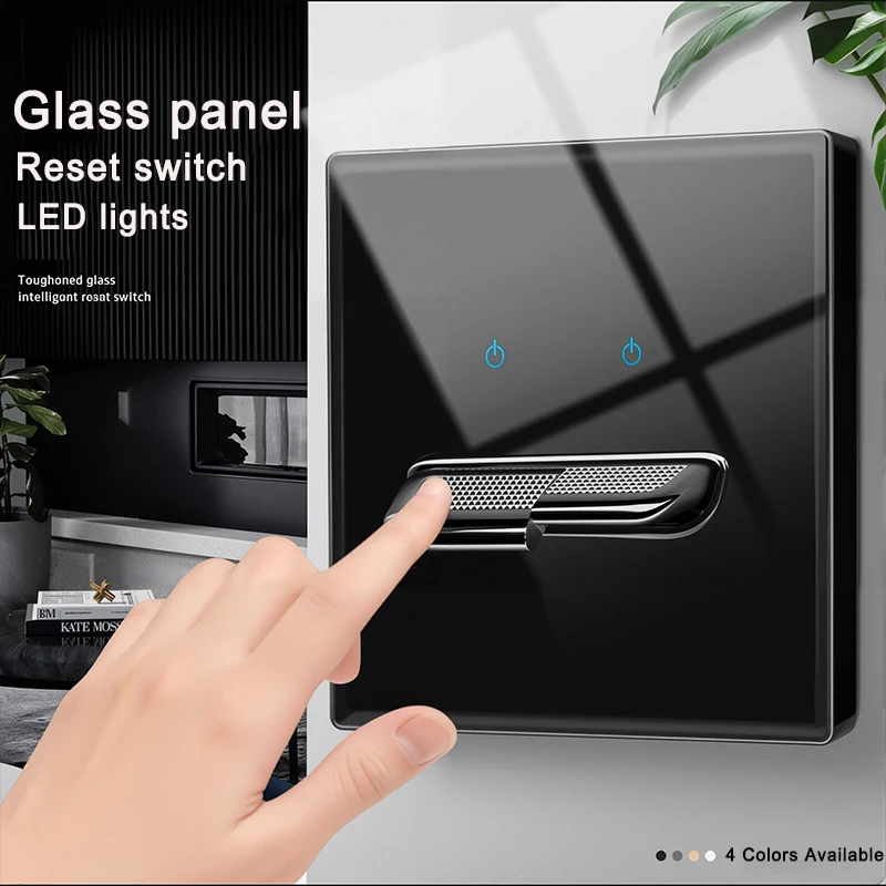 อังกฤษภาษาฝรั่งเศสคํามาตรฐานกระจกนิรภัยสวิทช์ซ็อกเก็ตไฟแสดงสถานะรีเซ็ตตัวเอง 1 2 3 4 GANG Wall แผง Outlets 2 ซ็อกเก็ต USB